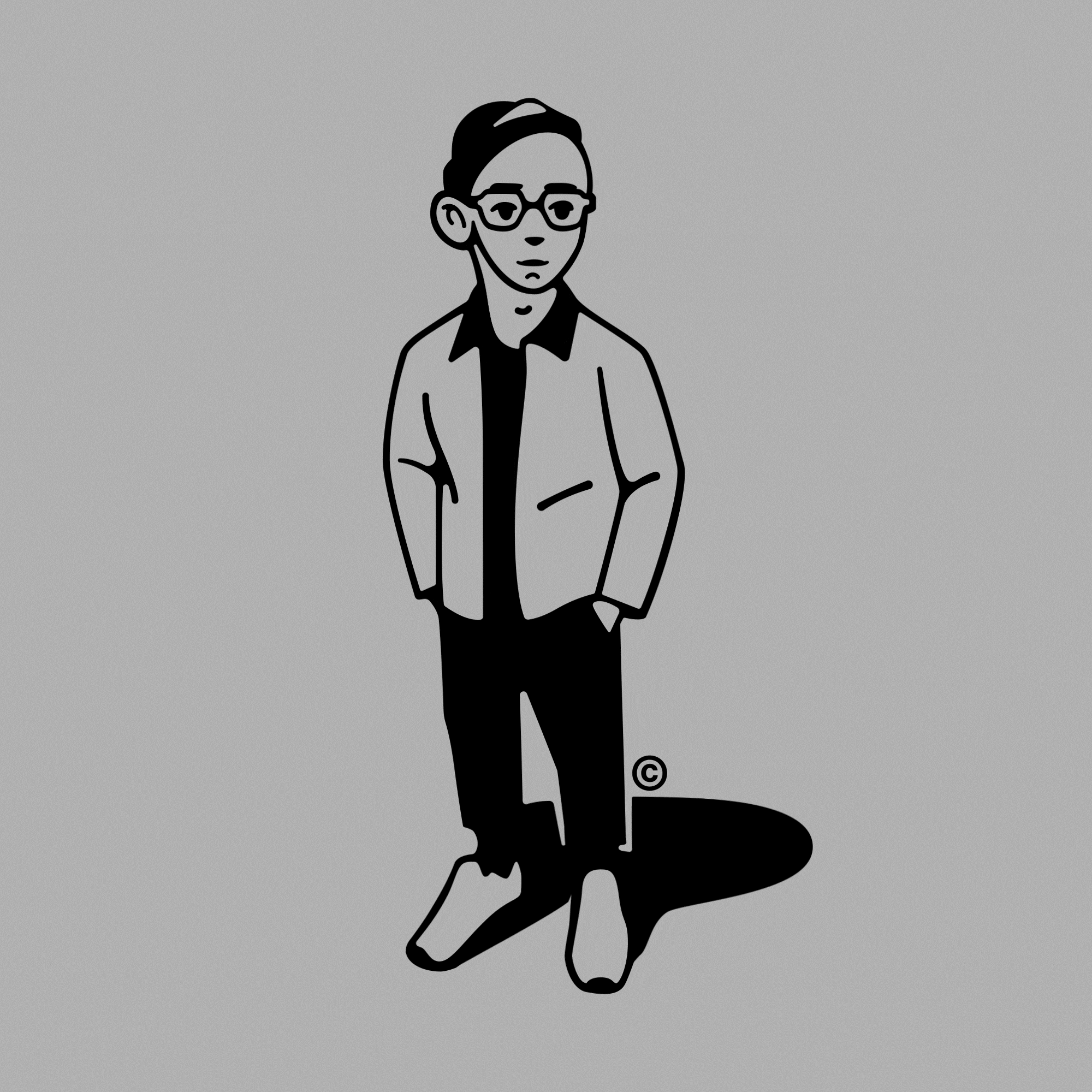 John Honer, Barbican site architect with Frank Woods and Geoffry Powell in the reflection.